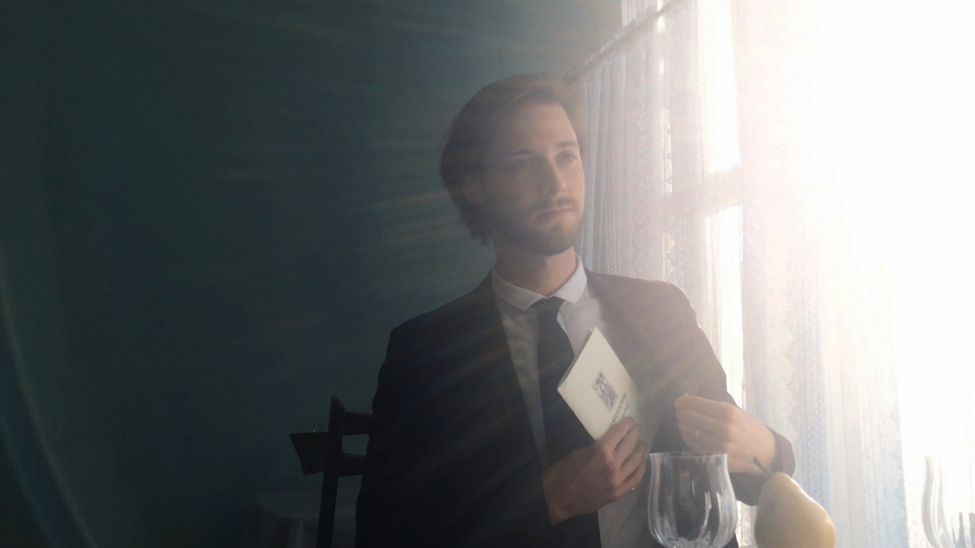 Ruth Lawrence’s film, titled La Quelle Affaire, is about a young woman who meets up with her boyfriend at a table where everything is edible. The film is based on Danielle Devereaux’s poem Quelle Affaire, which according to the author’s remarks when introducing the film, is the briefest poem she has ever written, comprising only the following two lines: