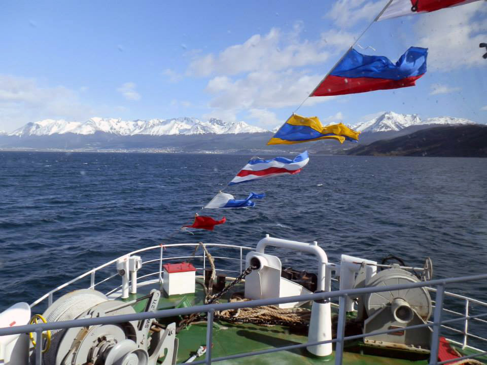 Albert summed up the arrival in Ushuaia this way: “Arrival was a grand event with the ship flying all the international code flags escorted by a helicopter filming the event. We were met on landing by the normal authorities and the ship’s new owner and several company officials. For me it was a very emotional time to meet some of the people I had last seen nineteen years ago, and judging from the reception I received they were very excited to see me again. For the crew, a good steak dinner and a few drinks in a fine restaurant with heartfelt thank you from the owners, both Canadian and Argentinian, and I guess (to the crew) a grateful thank you from their Captain capped the voyage.”