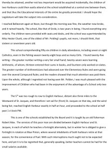 Sullivan put a force of police on the Ocean Belle to guard the schooner, while he went to Bay L’Argent to communicate with the government, telling Captain Wrayton that he would inform him of the decision. He was kept waiting for three days and then could get no satisfaction. Nothing was said, however, of confiscating the 300 barrels he had in the hold. Farrell feels as deeply aggrieved as does Captain Wrayton. It was a clear loss to him of 250 barrels for which he had a willing purchaser. It looks a little as if Sullivan had found that he was going too fast in his conduct. It is evidently simply a case of retaliation against Canadian vessels.